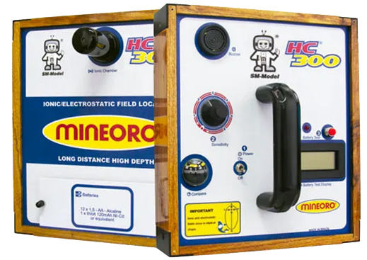 - Metais que detecta: O modelo HC300 detecta ouro, eventualmente prata e cobre em quantidade maior. Estes materiais tem que estar enterrados a mais de 10 anos.